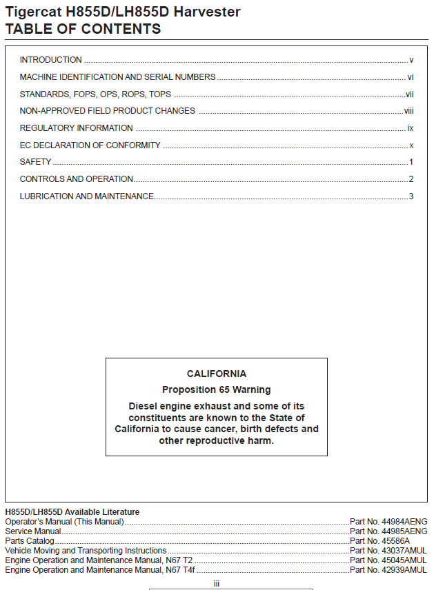 Download Complete Operator/User Manual For Tigercat LH855D Harvester | Serial No. (85582001-85583000)