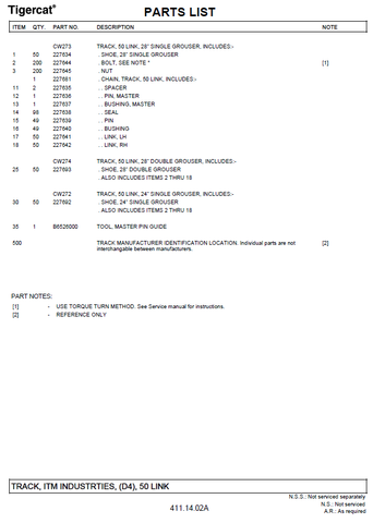 Download Complete Parts Catalogue Manual For Tigercat LH855E Harvester