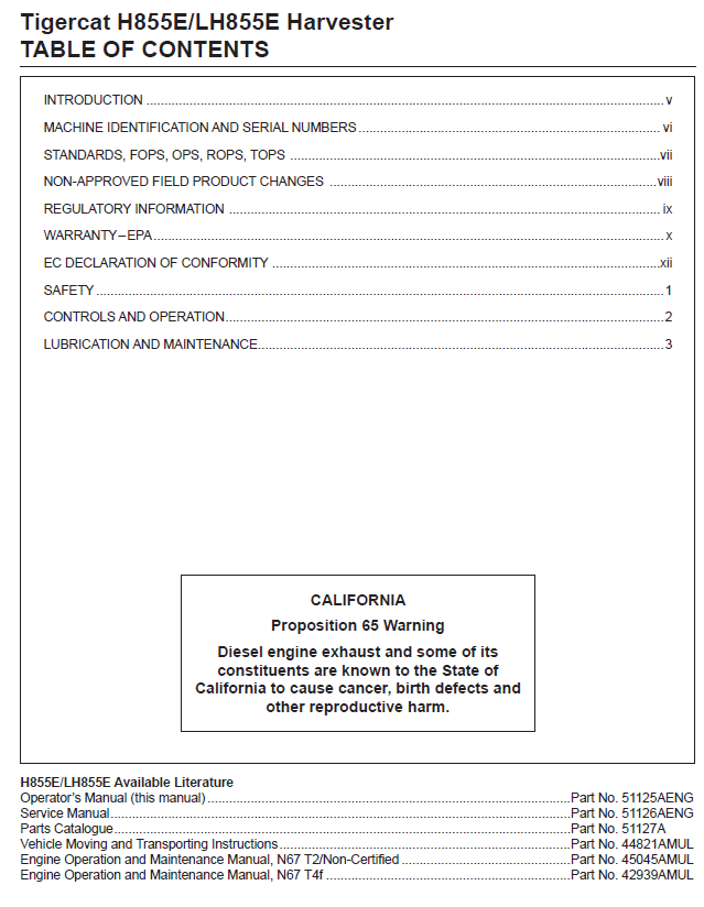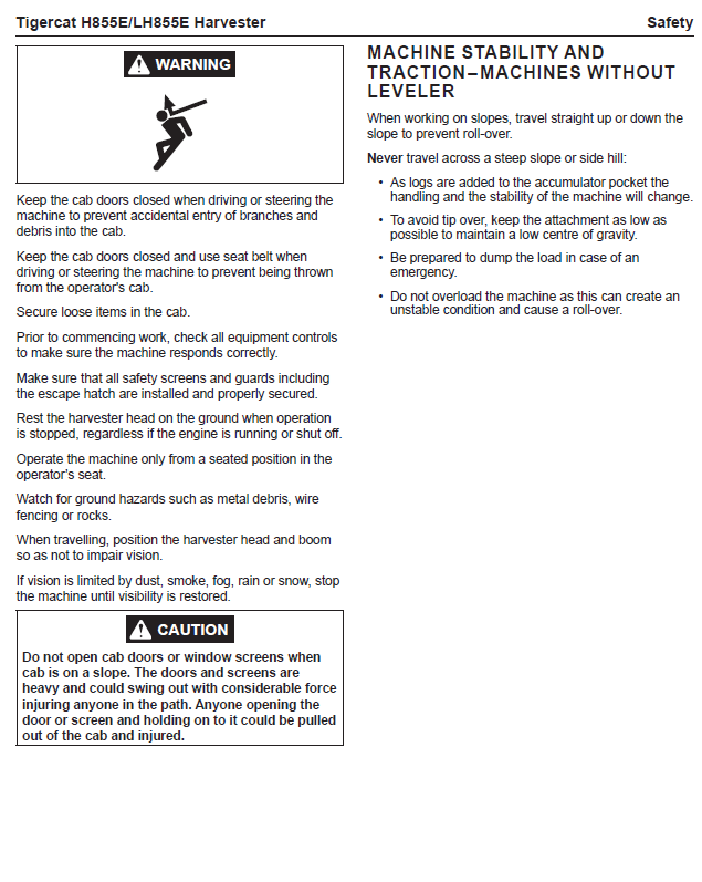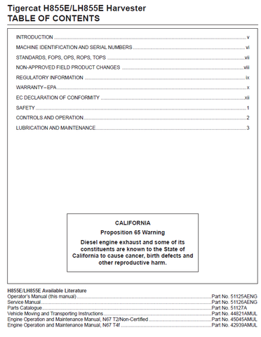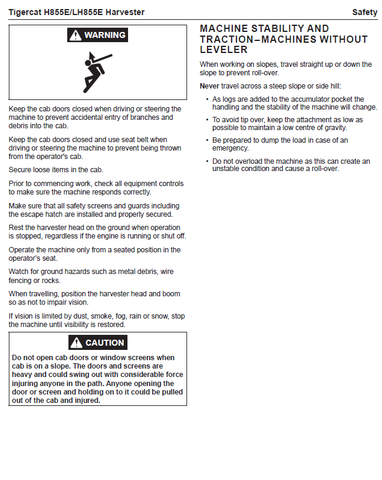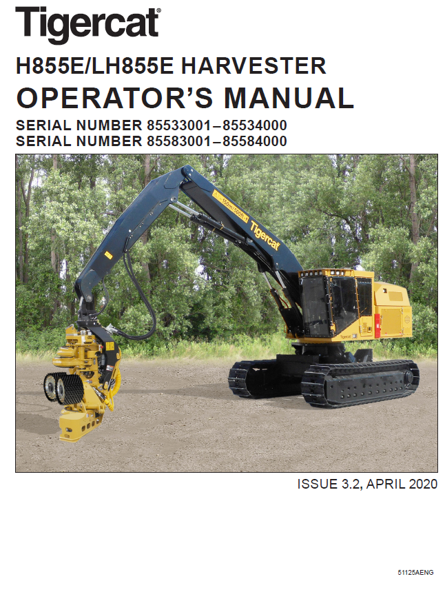 Download Complete Operator/User Manual For Tigercat LH855E Harvester | Serial No. (85583001-85584000)