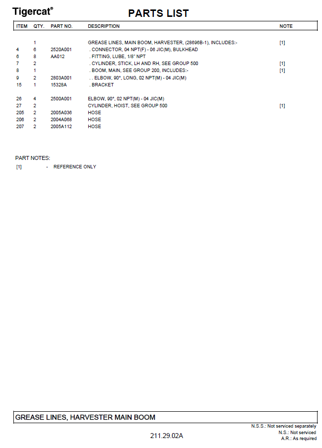 TIGERCAT LH870C HARVESTER PARTS CATALOGUE MANUAL (87081501 - 87083000) - PDF FILE DOWNLOAD