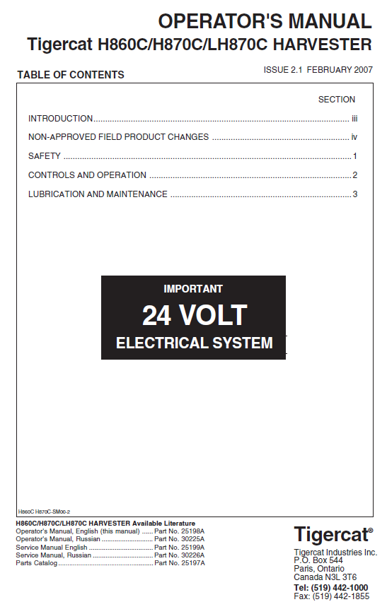 TIGERCAT LH870C MANUAL