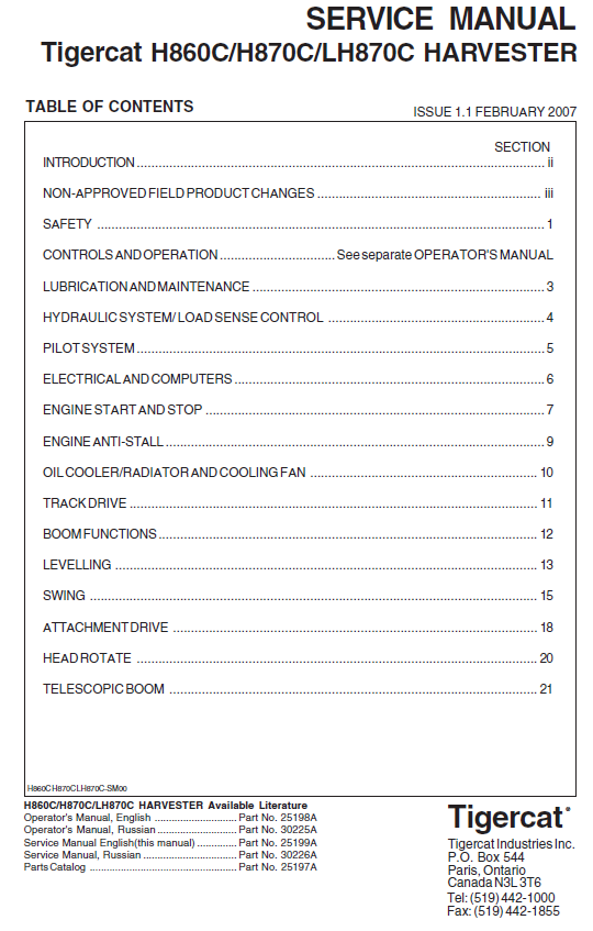 TIGERCAT LH870C HARVESTER SERVICE REPAIR MANUAL (87081501-87082499) - PDF FILE DOWNLOAD