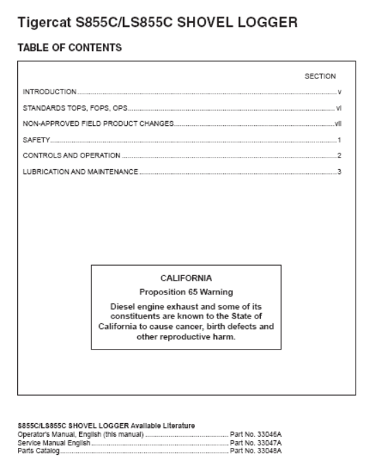 Tigercat LS855C Shovel Logger Operator/User Manual (85500101-85502000, 85550101-85551000) - PDF File Download