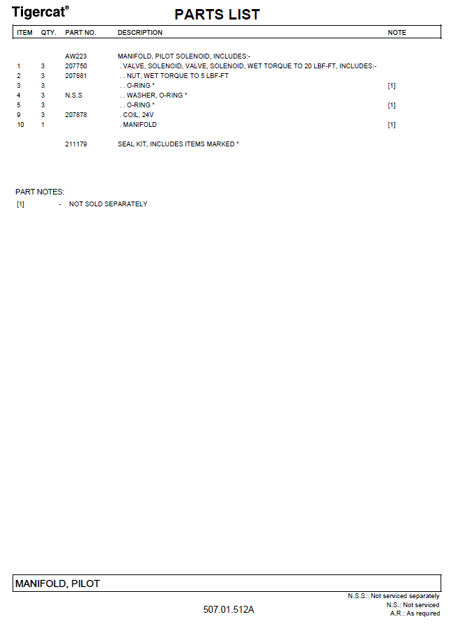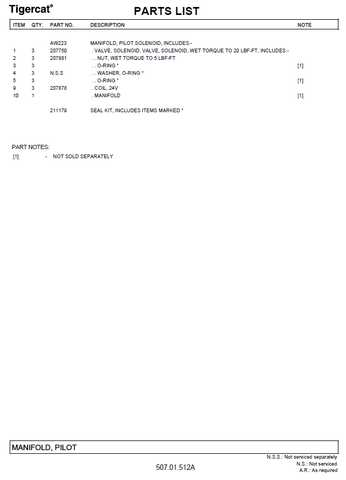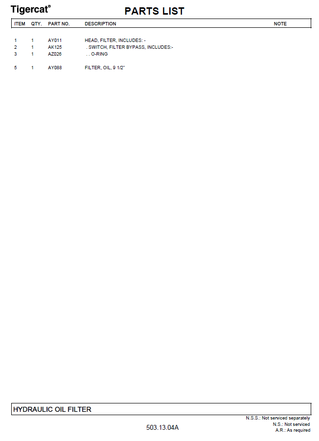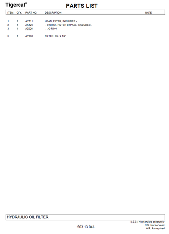TIGERCAT LS855D PARTS CATALOGUE MANUAL