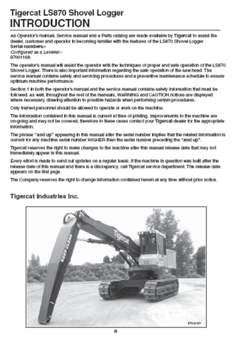 Tigercat LS870 Shovel Logger Operator/User Manual (87001168-87001499) - PDF File Download