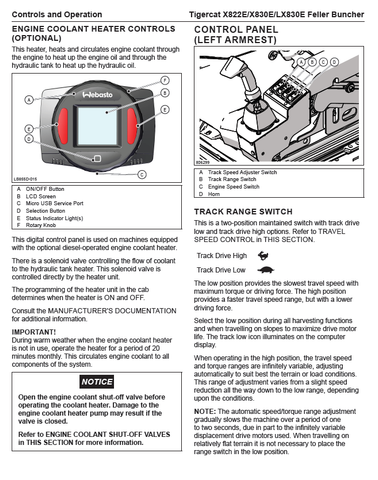 Tigercat LX830E Feller Buncher Operator/User Manual provides comprehensive technical information to assist users in understanding and operating the Tigercat LX830E Feller Buncher. All information is verified to be accurate and presented in an easy-to-understand format. Download now to get the most out of your machine.