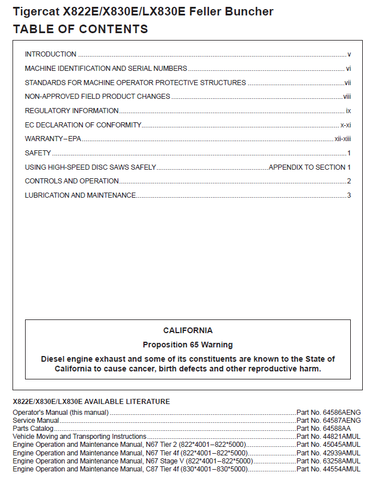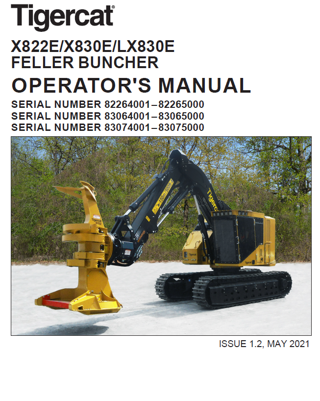Download Complete Operator/User Manual For Tigercat LX830E Feller Buncher | Serial No. (83074001-83075000)