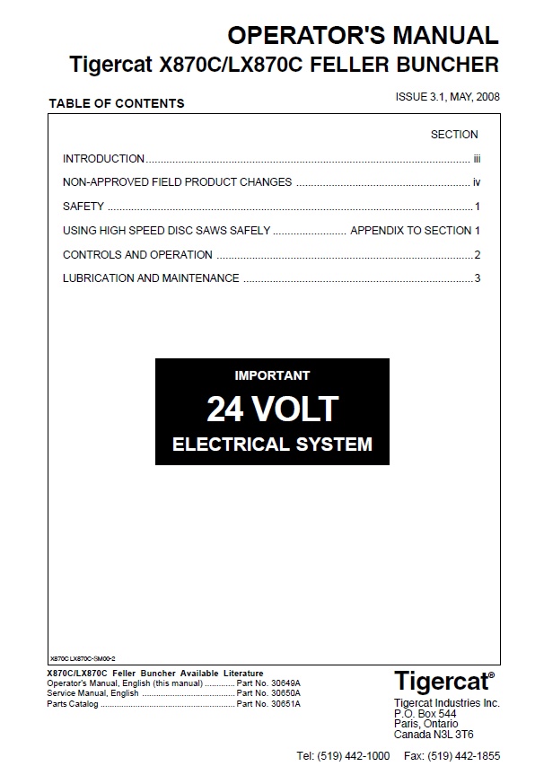 TIGERCAT LX870C FELLER BUNCHER OPERATOR/USER MANUAL