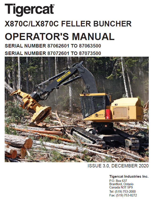 Download Complete Operator/User Manual For Tigercat LX870C Feller Buncher | Serial No. (87071701-87073500, 87072601-87073500)