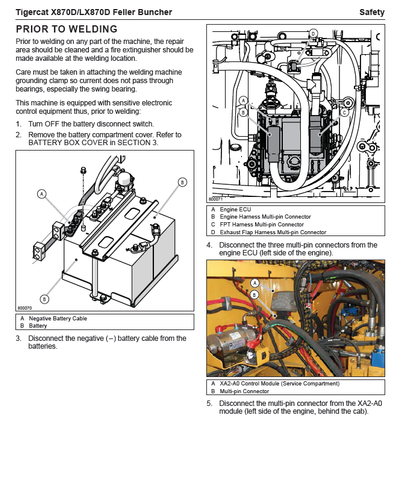 This comprehensive service repair manual for the Tigercat LX870D Feller Buncher offers detailed illustrations and instructions for machine servicing and repairs. The detailed diagrams and step-by-step instructions make this PDF file the ideal technical resource for maintaining and fixing this important piece of forestry equipment.