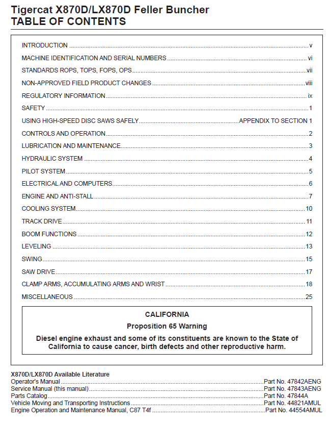 Download Complete Service Repair Manual For Tigercat LX870D Feller Buncher | Serial No. (87073501-87075000)