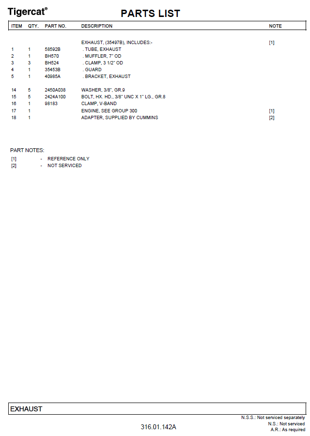 TIGERCAT M718E PARTS CATALOGUE MANUAL