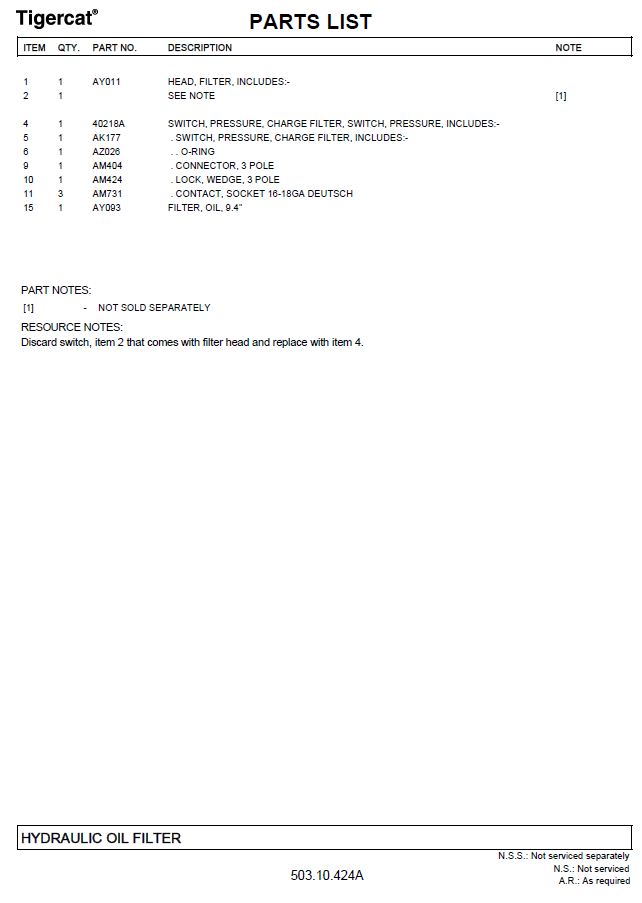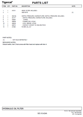 TIGERCAT M724D PARTS CATALOGUE MANUAL