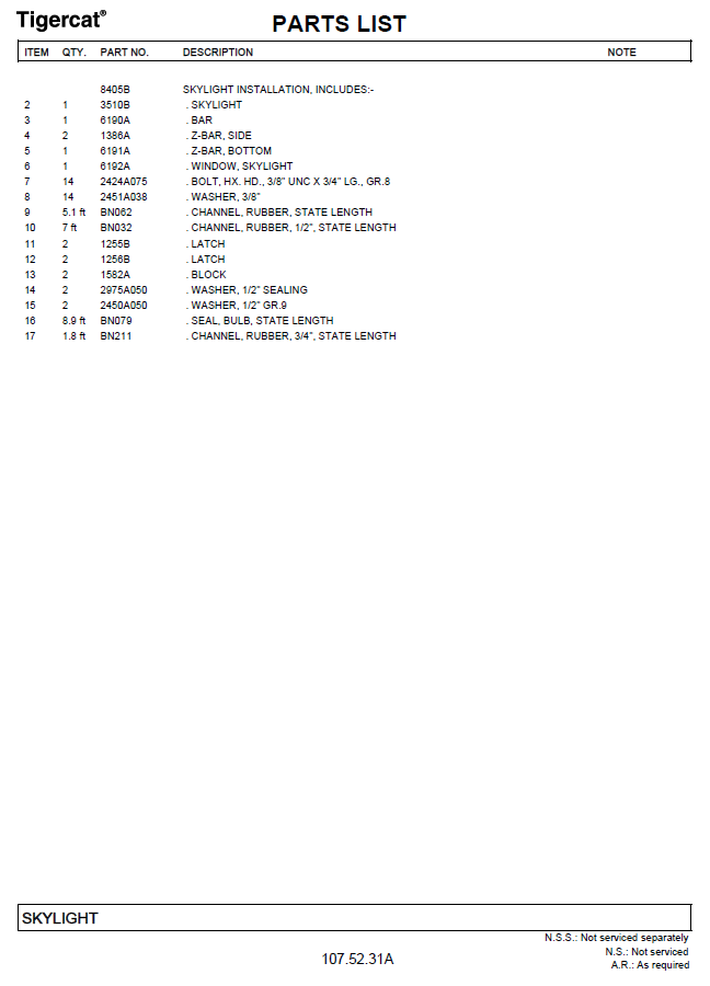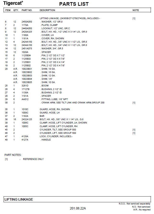 TIGERCAT M726D PARTS CATALOGUE MANUAL