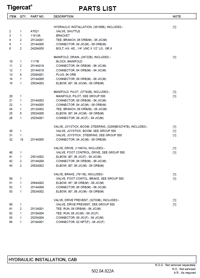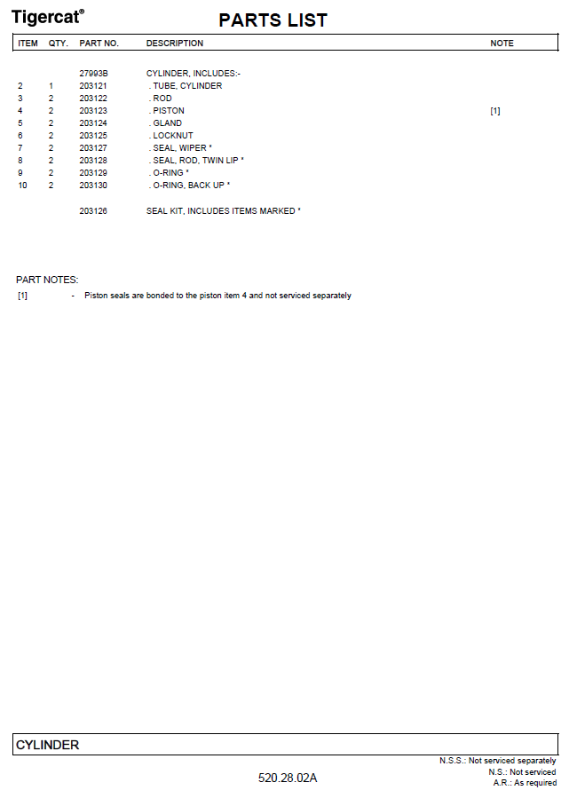TIGERCAT M726E PARTS CATALOGUE MANUAL