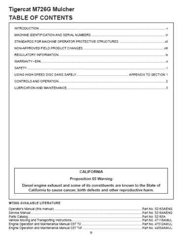 Tigercat M726G Mulcher Operator/User Manual (726M6001-726M6250, 726M5001-726M6000) - PDF File Download