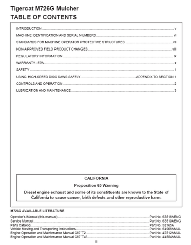 Download Complete Operator/User Manual PDF For Tigercat M726G Mulcher | Serial No. (726M6001-726M6250, 726M6001-726M6250)