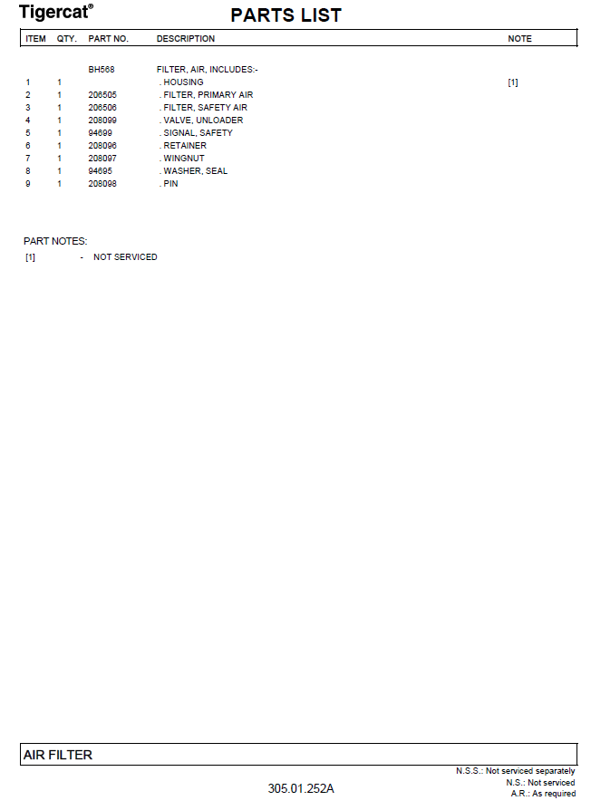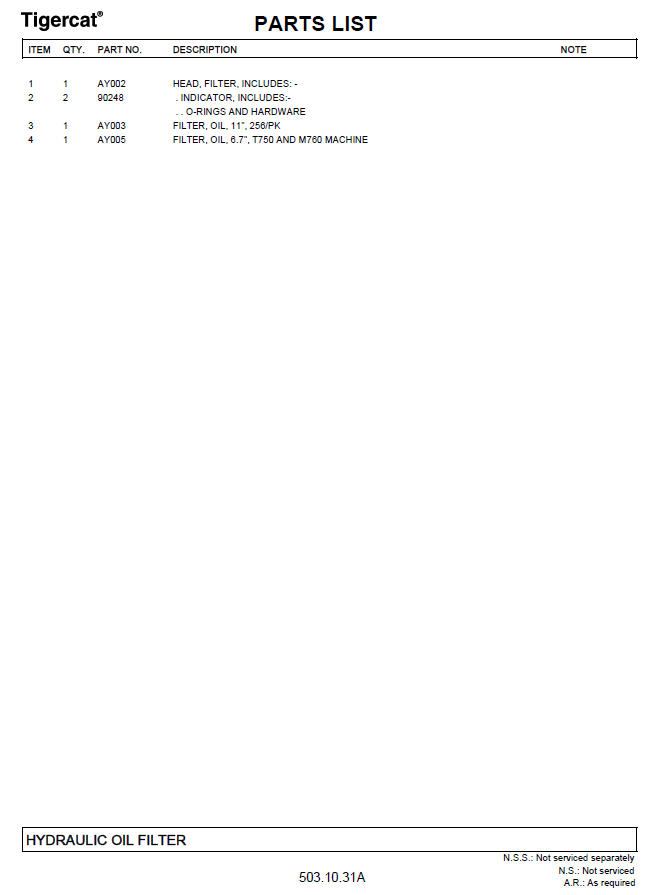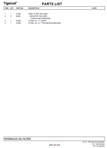 TIGERCAT M760 PARTS CATALOGUE MANUAL