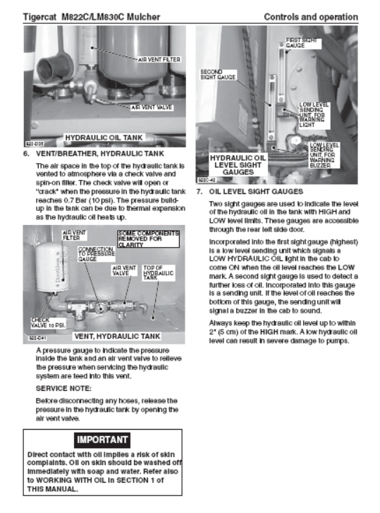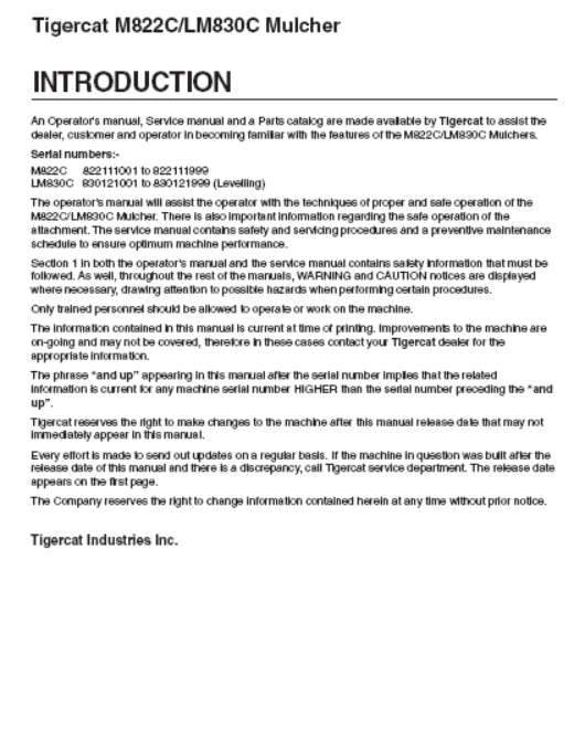 Download Complete Operator/User Manual PDF For Tigercat M822C Mulcher | Serial No. (822111001-822111999)
