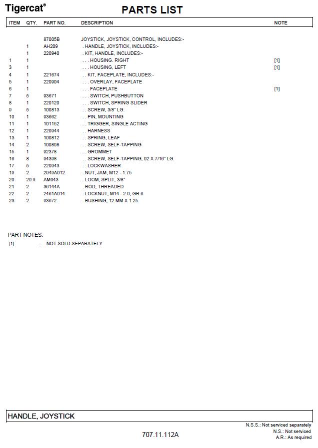 TIGERCAT PARTS CATALOGUE MANUAL