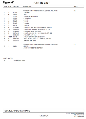 TIGERCAT S855C PARTS CATALOGUE MANUAL