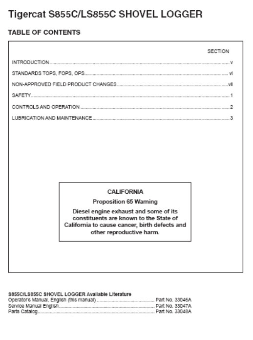 Tigercat S855C Shovel Logger Operator/User Manual (85550101-85552000, 85550101-85551000) - PDF File Download