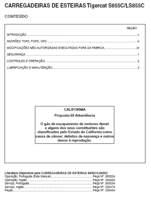 Download Complete Operator/User Manual PDF For Tigercat S855C Shovel Logger | Serial No. (85550101-85552000, 85550101-85551000) - Portuguese