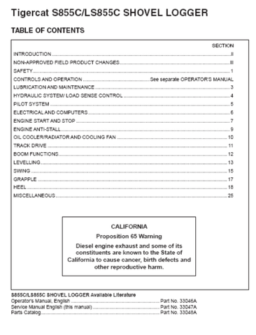 Download Complete Service Repair Manual PDF For Tigercat S855C Shovel Logger | Serial No. (85550101-85552000, 85550101-85551000)