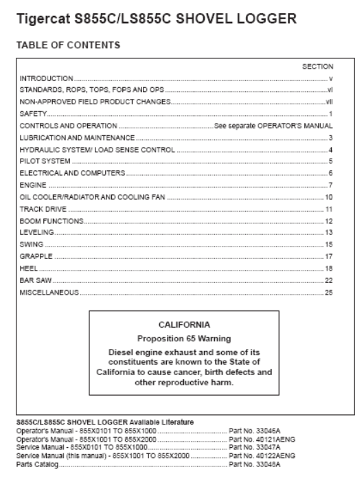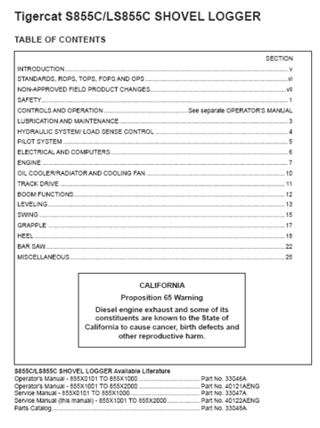 Tigercat S855C Shovel Logger Service Repair Manual (85550101-85552000, 85551001-85552000) - PDF File Download