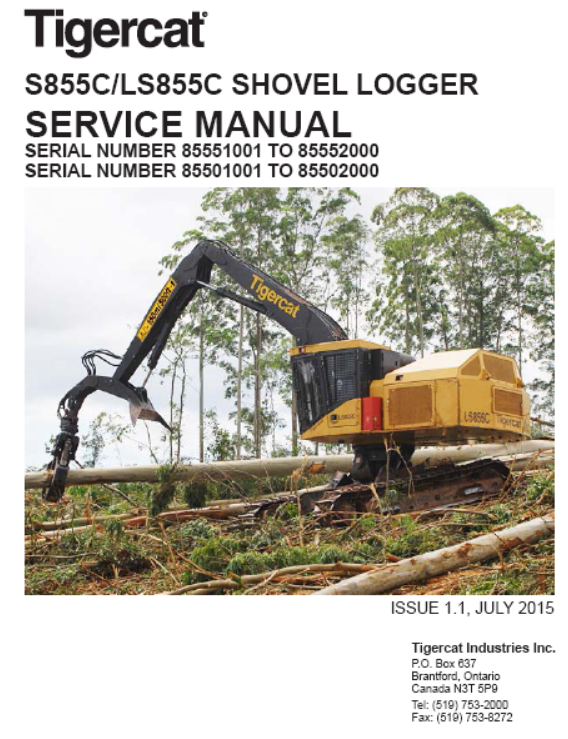 Download Complete Service Repair Manual PDF For Tigercat S855C Shovel Logger | Serial No. (85550101-85552000, 85551001-85552000)