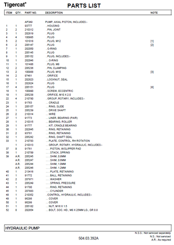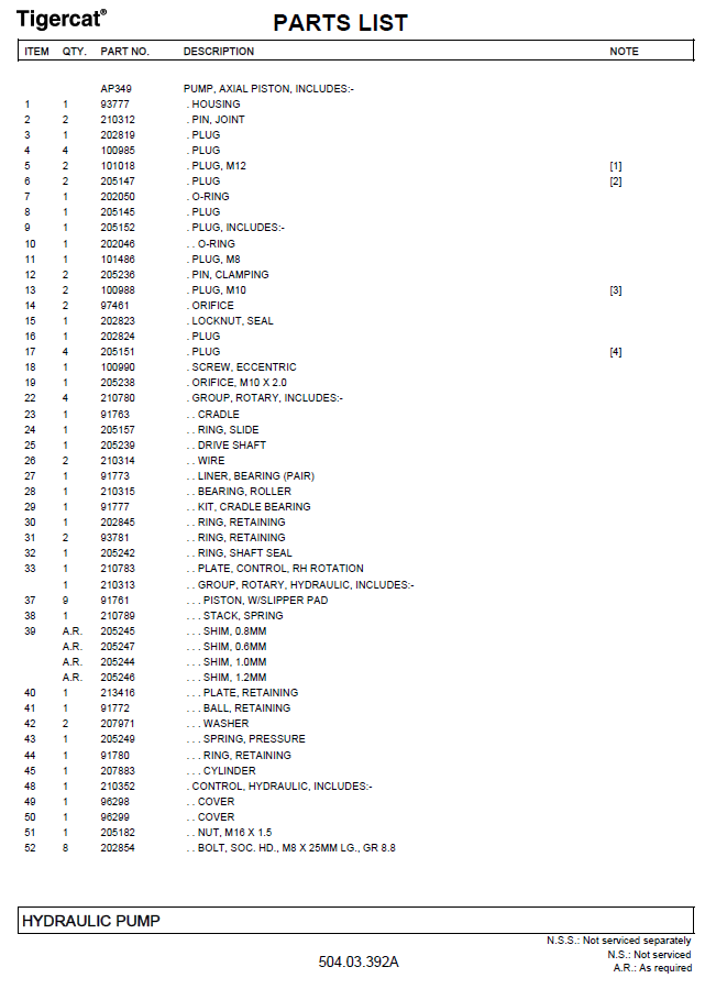 TIGERCAT S855D PARTS CATALOGUE MANUAL