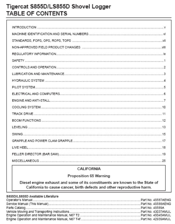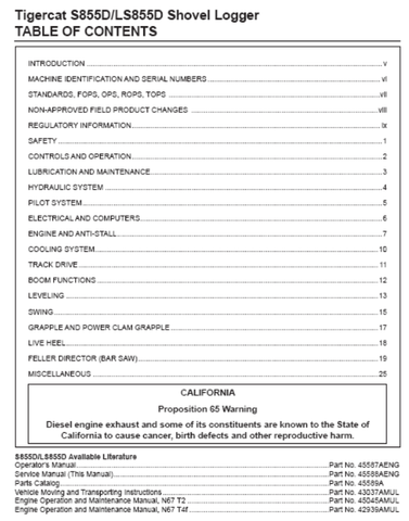 Download Complete Service Repair Manual PDF For Tigercat S855D Shovel Logger | Serial No. (85552001-85553000)