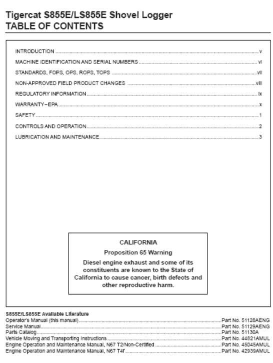 Learn how to efficiently operate and maintain your Tigercat S855E Shovel Logger with our comprehensive operator/user manual. This PDF file download provides in-depth instructions and expert tips, ensuring optimal performance and productivity. Get your hands on the ultimate resource for successful operation and long-term use.