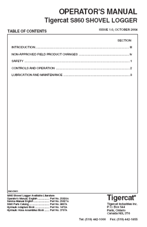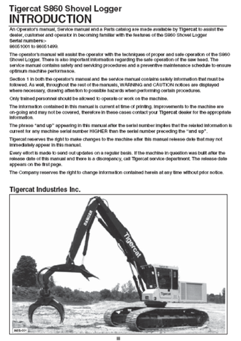 Learn how to operate and maintain your Tigercat S860 Shovel Logger with this comprehensive Operator/User Manual. Available for instant download in PDF format, it covers all necessary features and procedures to ensure optimal performance and longevity of your machine. Get expert knowledge at your fingertips today.