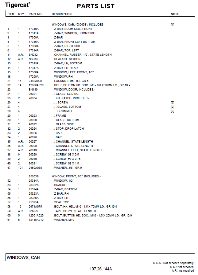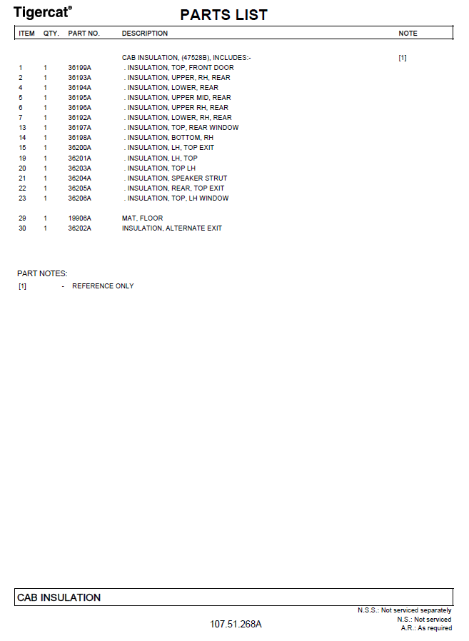 TIGERCAT S860C PARTS CATALOGUE MANUAL