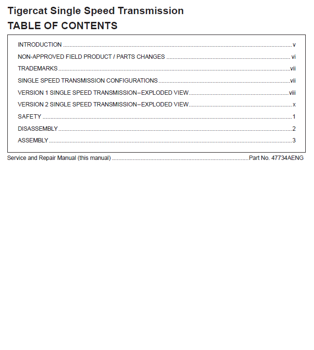 This official Tigercat Single Speed Transmission Service Repair Manual in PDF format provides step-by-step, comprehensive instructions to service and repair all components of your transmission. Detailed diagrams and illustrations are included to help you quickly and easily identify the correct parts and procedures. Save time and money by downloading this comprehensive manual today.