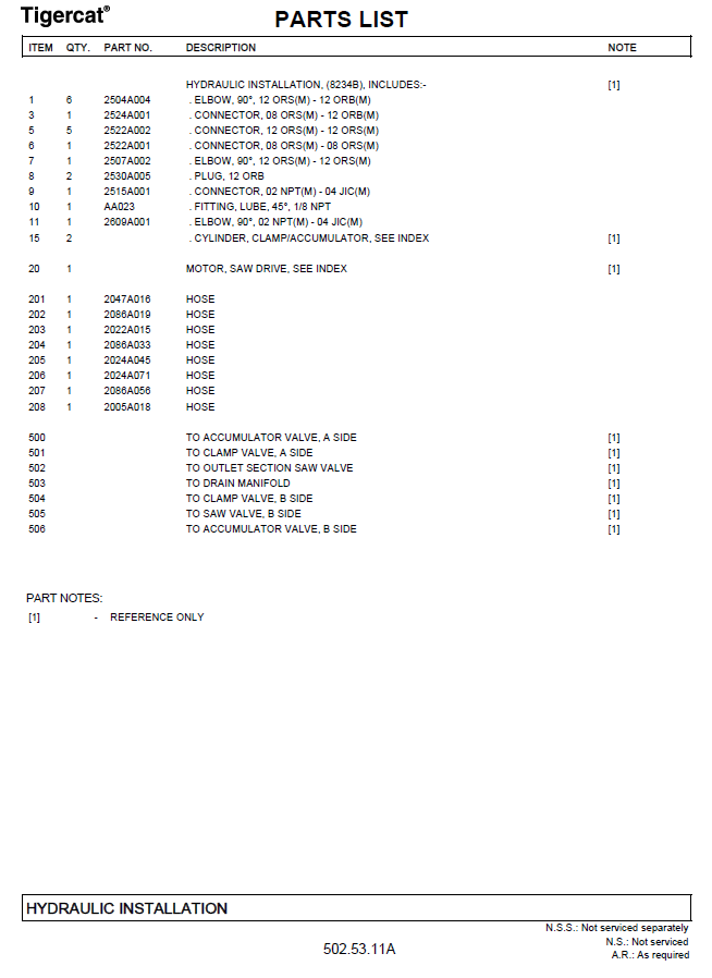 Download Complete Parts Catalogue Manual For Tigercat SW5700 Saw Head | Serial No. - (SW571001 - SW571499, SW572001 - SW575000)