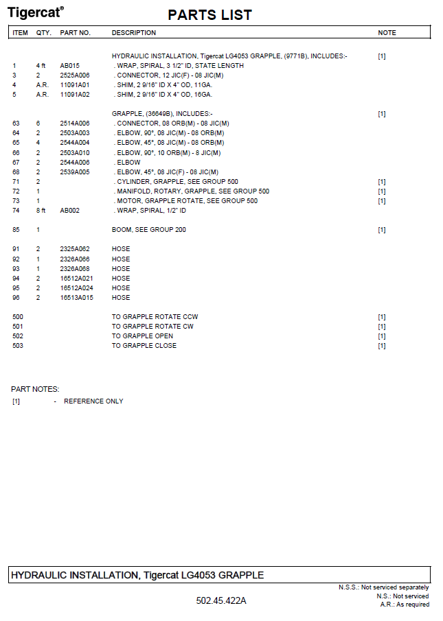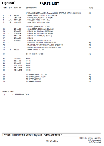TIGERCAT T234 LOADER PARTS MANUAL