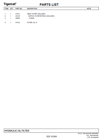 TIGERCAT T234 PARTS CATALOGUE MANUAL