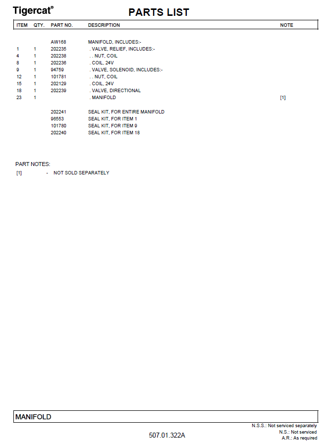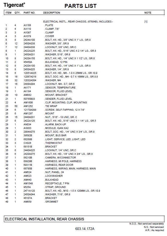 TIGERCAT T726G PARTS CATALOGUE MANUAL