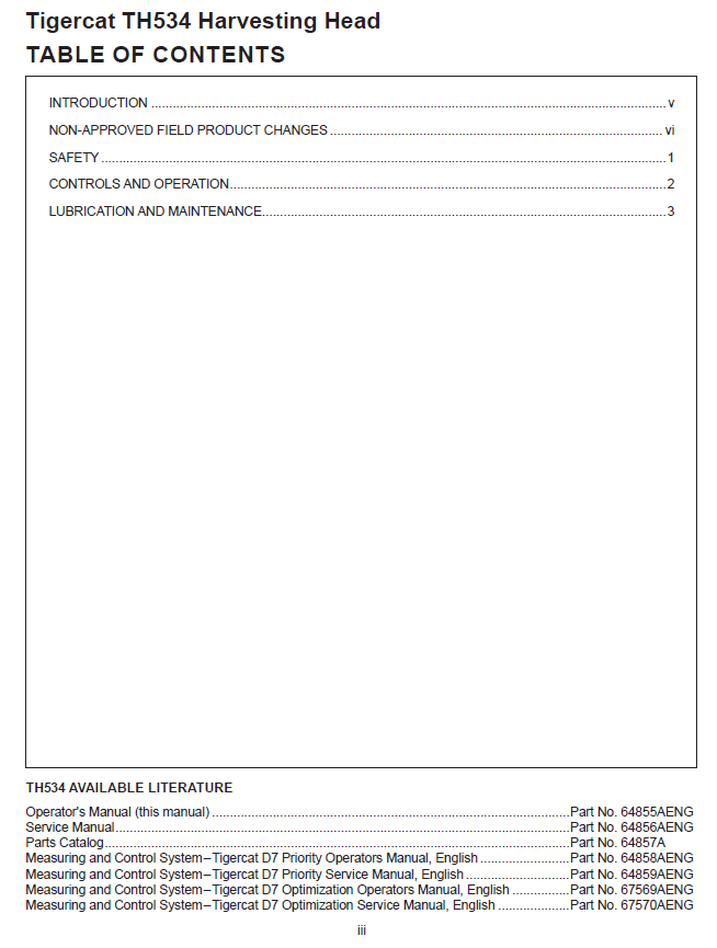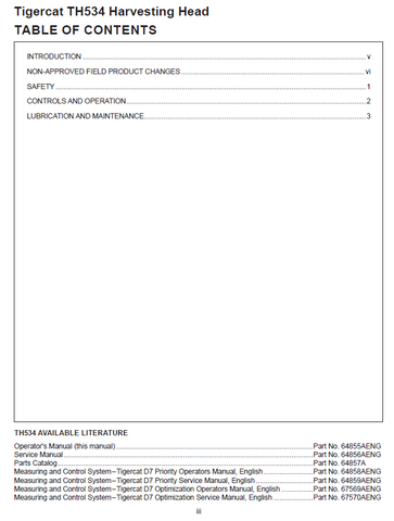 The Tigercat TH534 Harvesting Head Operator/User Manual (5340001-5341000) is the essential guide for safe operation and maintenance of the TH534 harvesting head. The manual contains model-specific instructions for use, covering everything from installation to troubleshooting. Download the PDF file today and get the confidence to maximize productivity in your harvesting operations.