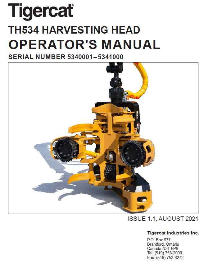 Download Complete Operator/User Manual For Tigercat TH534 Harvesting Head | Serial No. (5340001-5341000)