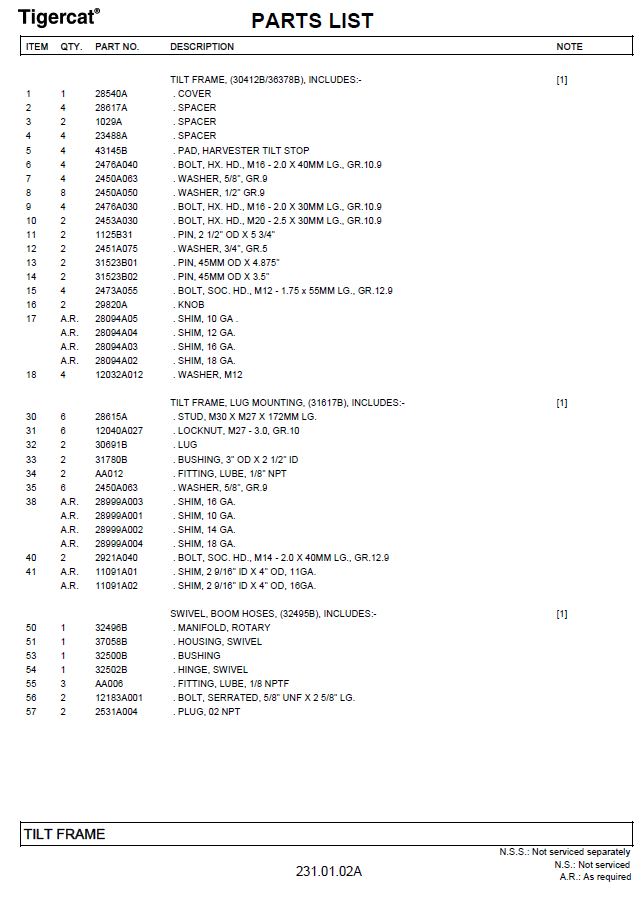 Download Complete Parts Catalogue Manual For Tigercat LH575 Harvesting Head