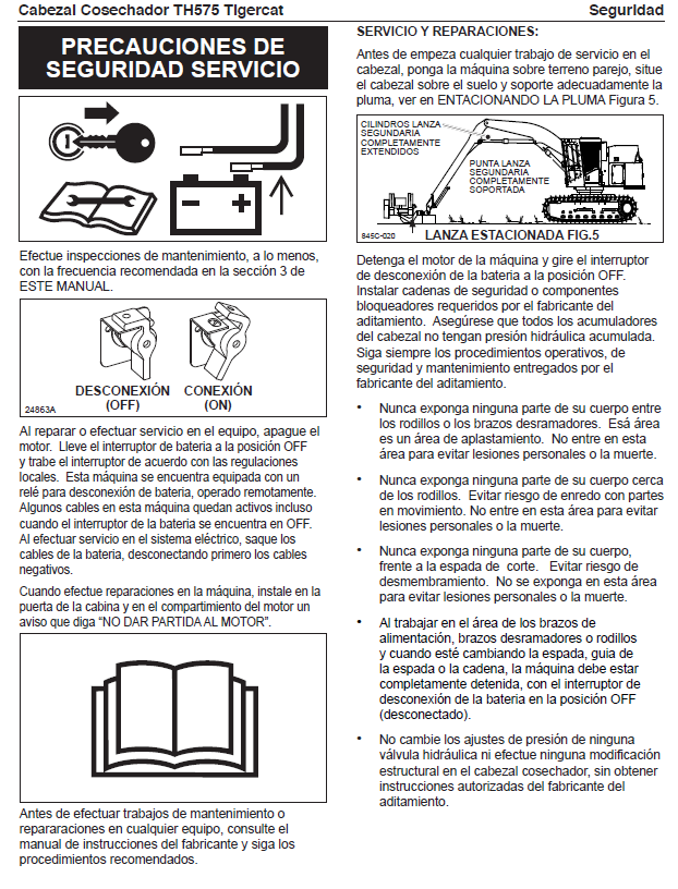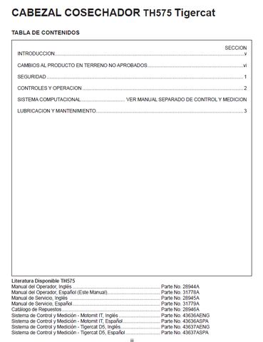 Download Complete Operator/User Manual For Tigercat TH575 Harvesting Head | Serial No. (5750101-5752000) - Spanish