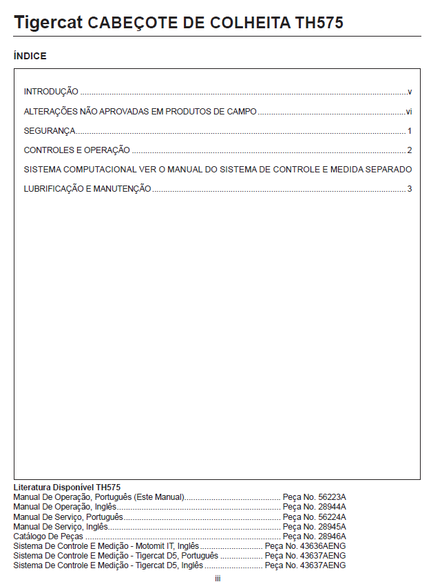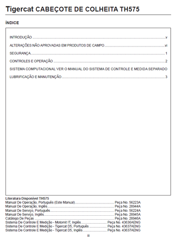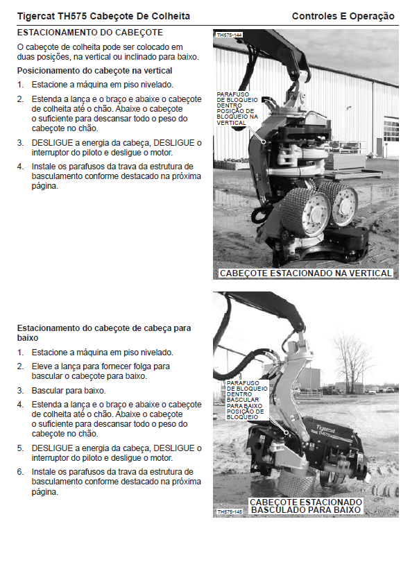 Download Complete Operator/User Manual For Tigercat TH575 Harvesting Head | Serial No. (5750101-5752000) - Portuguese