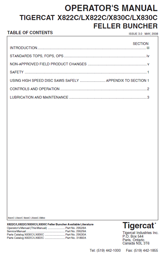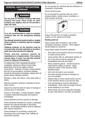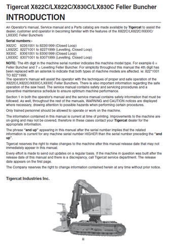 TIGERCAT X822C FELLER BUNCHER OPERATOR/USER MANUAL (82261001-82263000, 82261001-82261999) - PDF FILE DOWNLOAD
