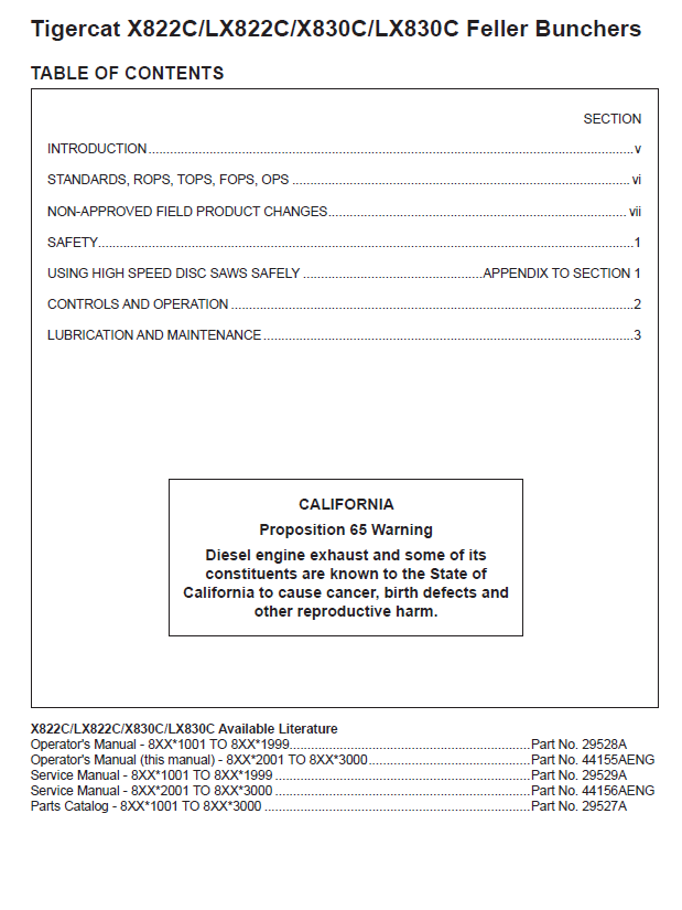 TIGERCAT X822C FELLER BUNCHER OPERATOR/USER MANUAL (82261001-82263000, 82262001-82263000) - PDF FILE DOWNLOAD