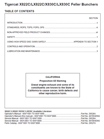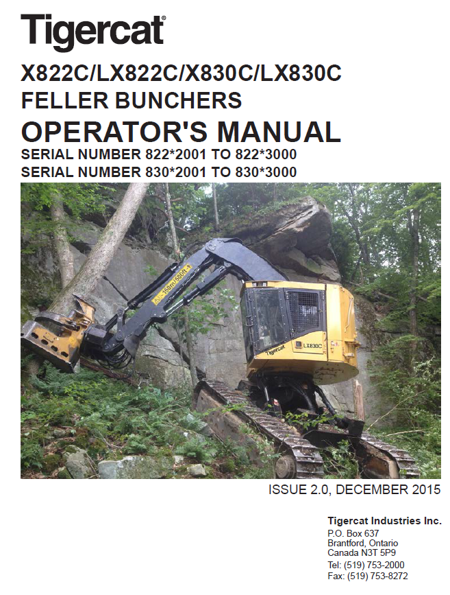 Download Complete Operator/User Manual For Tigercat X822C Feller Buncher | Serial No. (82261001-82263000, 82262001-82263000)