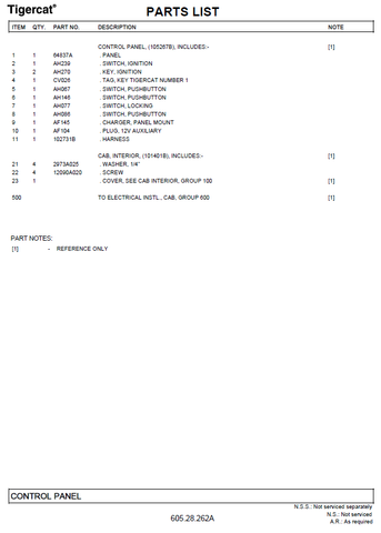 TIGERCAT X822E PARTS CATALOGUE MANUAL