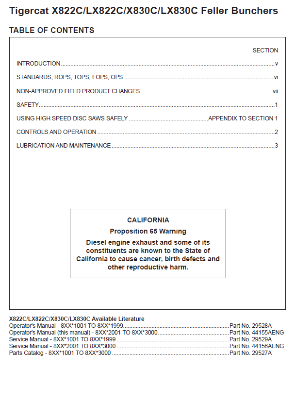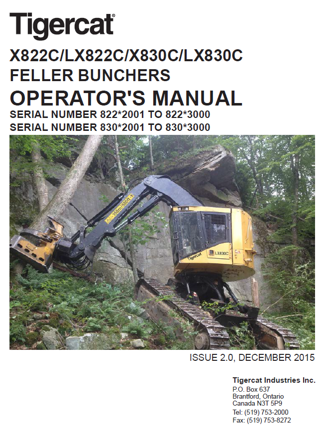 Download Complete Operator/User Manual For Tigercat X830C Feller Buncher | Serial No. (83061001-83063000, 83062001-83063000)